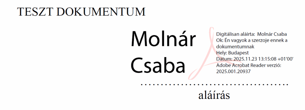 Mindezek együtt erősítik azt a szemléletet, hogy nem szabad egy aláírás elfogadását sem elhamarkodnunk. Csupán azért, mert látható egy dokumentum képi megjelenésén egy elektronikus aláíráslenyomat, vagy éppen csak azért mert nem látható – hiszen ez nem szükséges feltétel -, még a mögöttes tartalom értelmében lehet érvényes vagy érvénytelen az aláírás, ráadásul nem minden jognyilatkozat esetében elfogadott minden tanúsítványtípus.