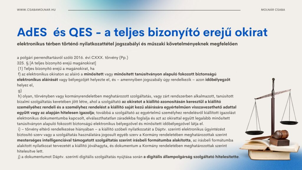 Ezzel elérkeztünk a 📌 hitelesítés, a hiteles elektronikus dokumentum kérdéséhez is, amelyet holnap vizsgálunk meg a ⚖️ DÁP vhr. tükrében.
