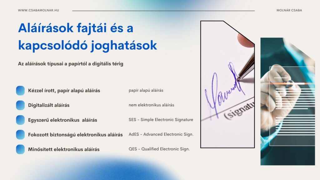 🔍 Számos olyan szolgáltatást találhatunk az internet világában, amely elektronikus aláírási lehetőséget kínál, más-más technológiai megoldásokkal. Fontos azonban ismernünk, hogy a különféle szolgáltatások milyen joghatás kiváltására alkalmasak.