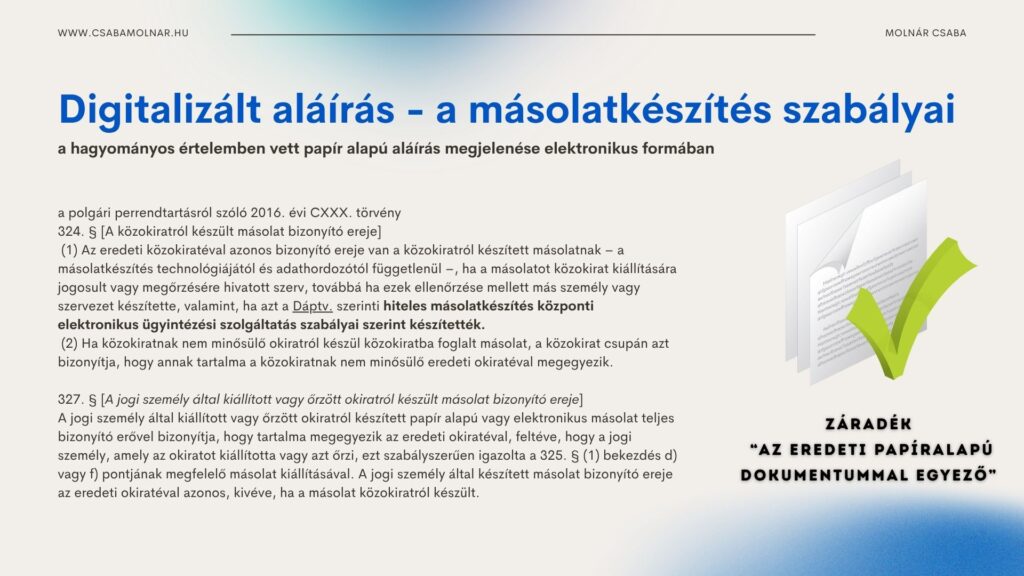 ⛓️‍💥 Kapcsolódva a tegnap megkezdett gondolatmenethez, ma hoztam a hiteles másolatkészítést érintően néhány sort a jogalkotótól.