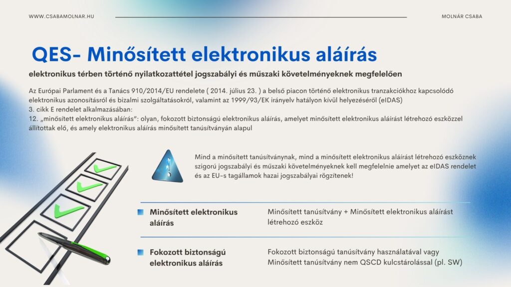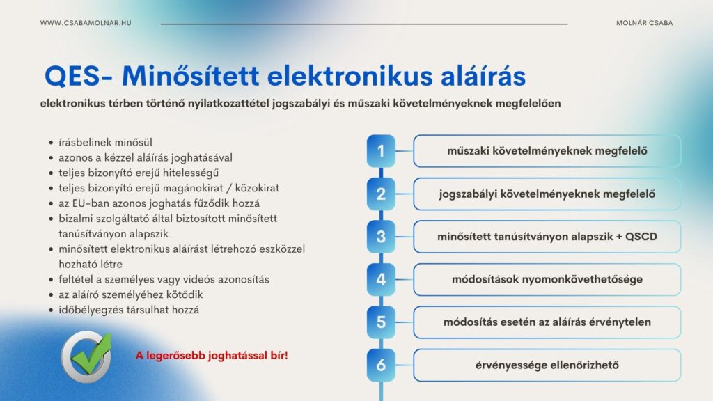 📌 Összefoglalva tehát – a tegnap megfogalmazottakkal összhangban – ✅ a minősített elektronikus aláírás hazai vagy EU-s bizalmi szolgáltató minősített tanúsítványán alapszik, és minősített elektronikus aláírást létrehozó eszközzel került létrehozásra – ilyen a DÁP eAláírás is. ⚠️ Utóbbi hiányában minősített tanúsítványon alapuló fokozott biztonságú elektronikus aláírás jön létre.